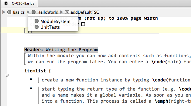 Breadcrumbs are a way to improve the user's awareness where in a (big) file he is currently editing. It is essentially a "horizontal tree" shown at the top of an editor that reflects the hierarchical structure of an editor's contents. Niko has made an MPS extension that displays a breadcrumb in an MPS editor. By clicking on a label the user can jump to the corresponding level of the containment hierarchy. By clicking on the little triangles one can see the remaining nodes in the hierarchy.