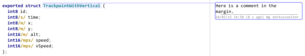 To put your own cells into the right margin, your cell must implement the IMarginCellContent interface. The editor of your cell may use the margincell-cell-width and margincell-dashed-line-interval style attributes to design the width and line style. You also have to have the actual margincell on the root element of the editor. However, as illustrated by the CommentAnnotationContainer from the review language, you can use an annotation for this. Hence, margin comments can essentially be added to every model, without the model's language being aware of it.